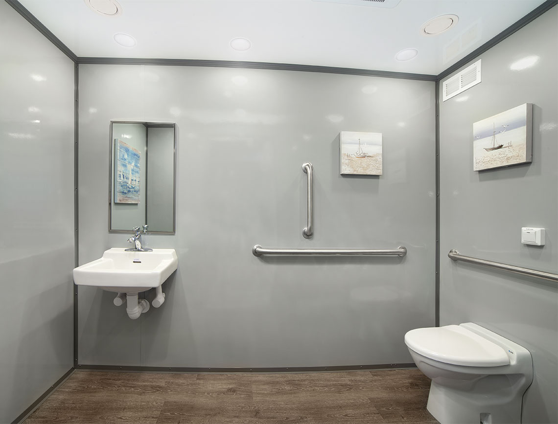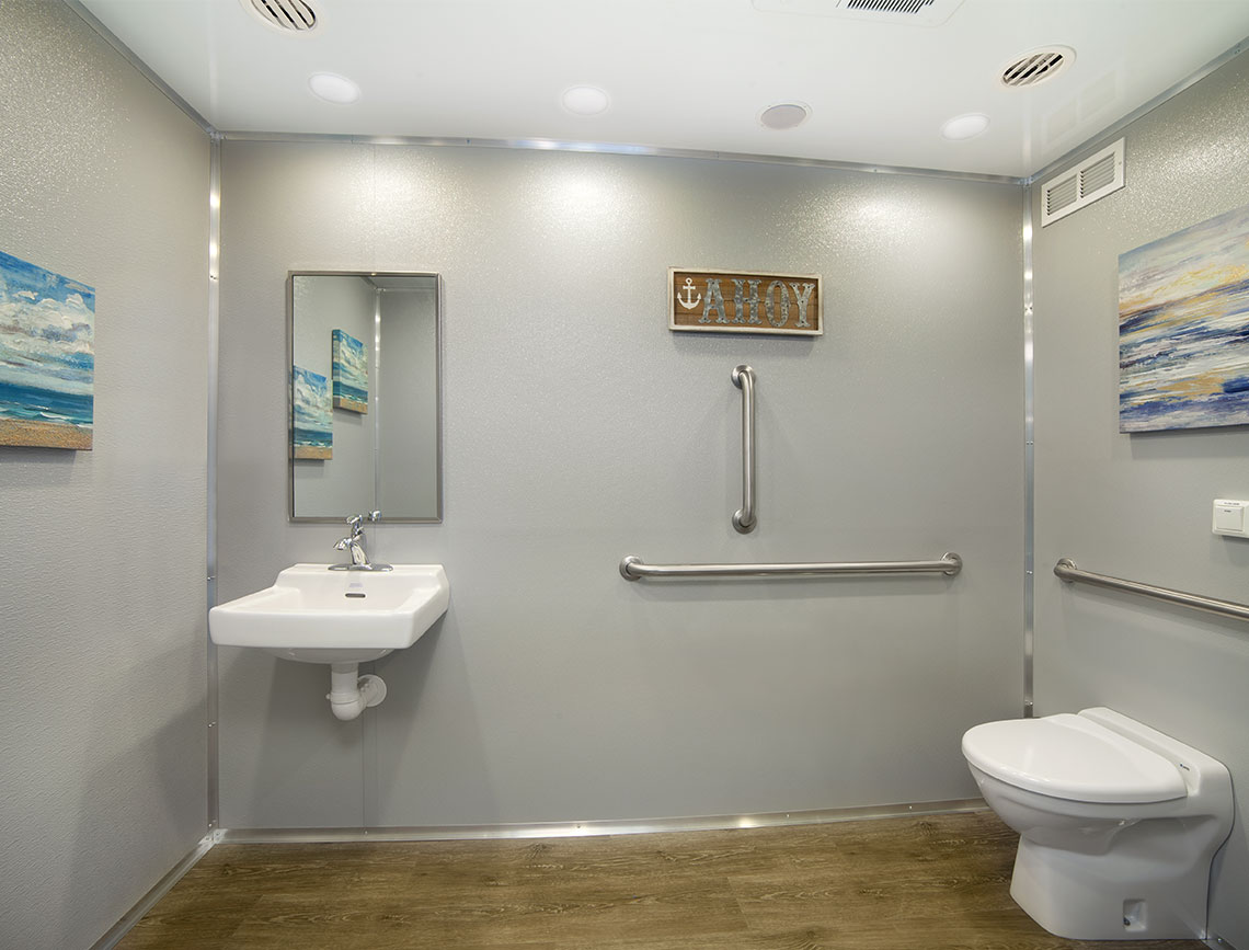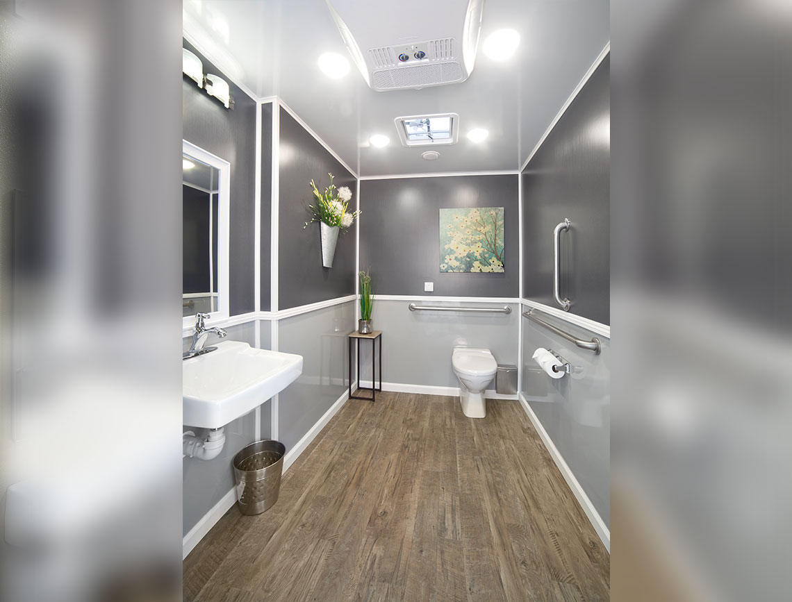 Satellite Suites' single station ADA is suitable for parties that just require restroom trailers. It is a sleek and cost-effective add-on trailer that is easy to use and operate.