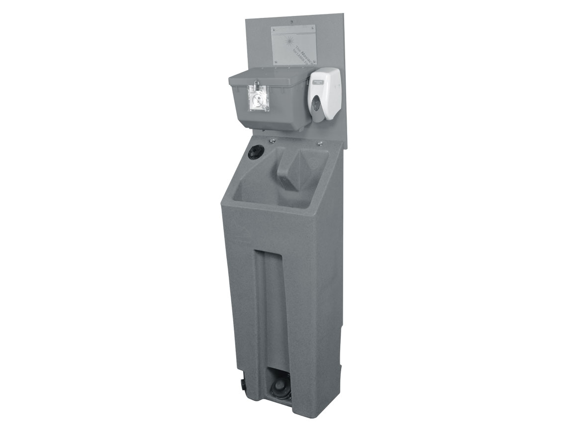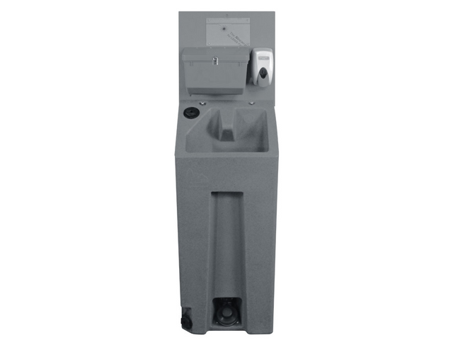 - Gray water drains directly into the portable restroom waste tank